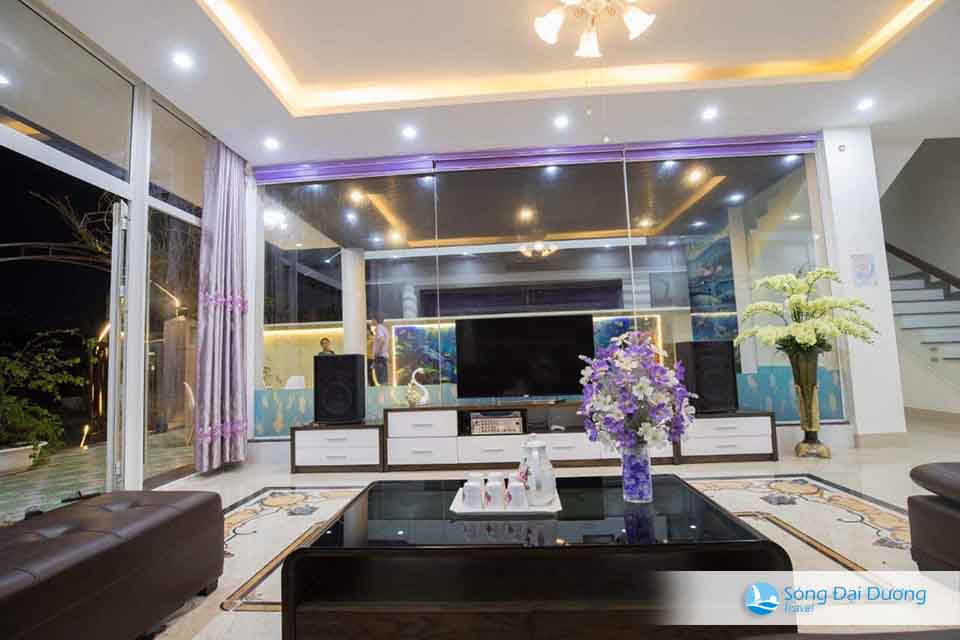 - Phòng khách có trang bị karaoke cho gia đình tận hưởng trọn vẹn những ngày nghỉ quý giá của mình,